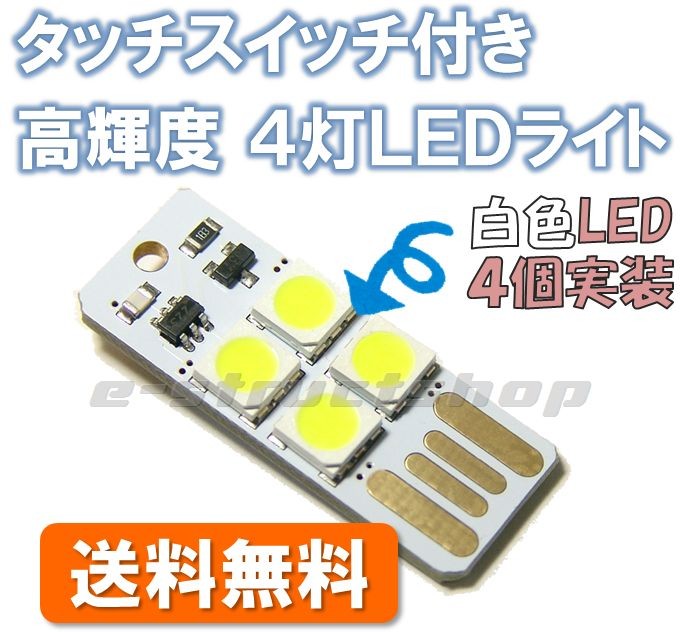【送料無料】 タッチスイッチ付き 高輝度 白色 LED ライト (USBポート差込タイプ) 触れるだけでON/OFF 簡易 照明 などに