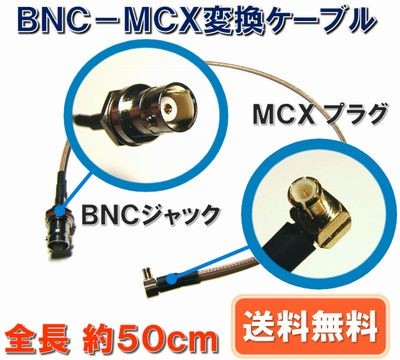 【送料無料】 BNC−MCX 変換 ケーブル (全長約50cm) ロング タイプ MCXプラグ