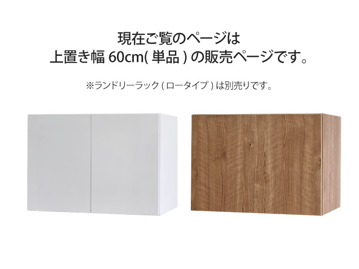 「ランドリーラック(ロータイプ)幅60cm」の上に設置しての使用を想定して設計しているため天面は化粧仕上げを施しておりません。