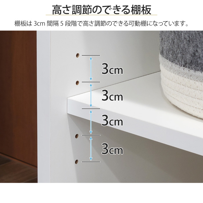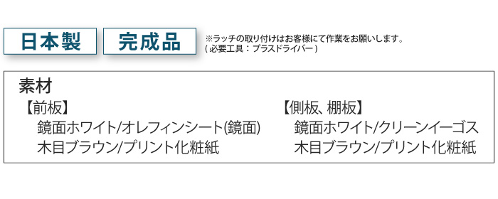 側板、棚板:鏡面ホワイト/クリーンイーゴス、木目ブラウン/プリント化粧紙