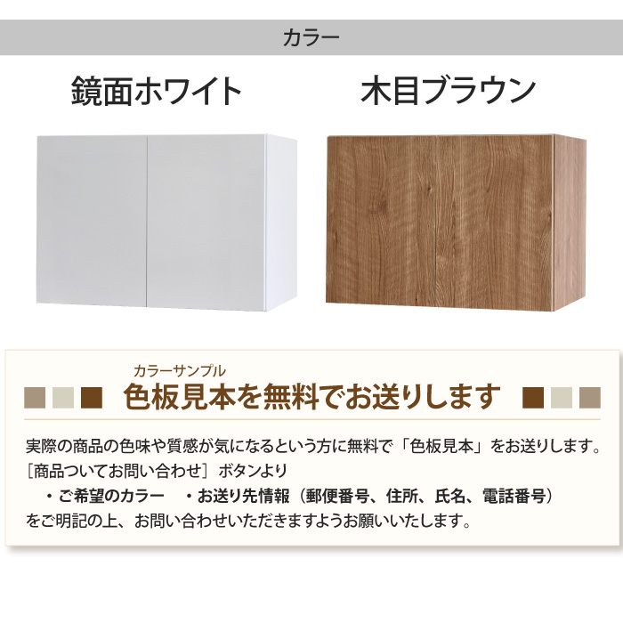 前板:鏡面ホワイト/オレフィンシート(鏡面)、木目ブラウン/プリント化粧紙