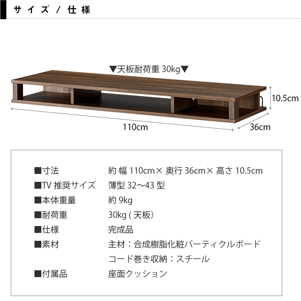 約幅110cm×奥行36cm×高さ10.5cm