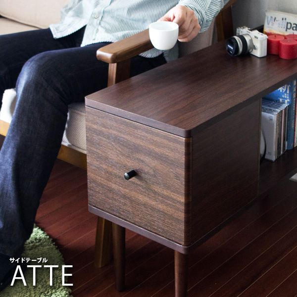 サイドテーブル コンパクトで多機能 ATTE ダークブラウン