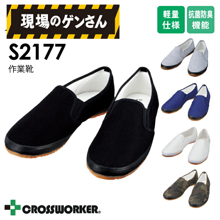 作業靴 S2177 現場のゲンさん シューズ 抗菌 防臭 室内 屋内 室内履き 軽量 カモフラ 迷彩 人気 自重堂 作業靴