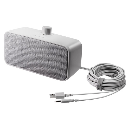 リビングテーブルを占領せず、手元に置いたときに邪魔にならないコンパクトサイズを実現。手元に運ぶときは、スピーカーに指がかかりやすく運びやすいデザインに仕上げています。