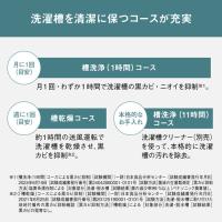 ●槽洗浄(1時間)コース 月1回・わずか1時間で洗濯槽の黒カビ・ニオイを抑制(※〈槽洗浄(1時間)コースによる黒カビ抑制〉[試験機関](一財)日本食品分析センター[試験成績書発行年月日]2024年6月19日[試験成績書発行番号]第24042880001‐0101号[試験方法]菌液の生菌数測定[黒カビ抑制方法]塩素系漂白剤による[対象部分]洗濯・脱水槽[試験結果]菌の減少率99%以上(自社換算値)※)。 ●槽洗浄(11時間)コース 洗濯槽クリーナー(別売)を使って、本格的に洗濯槽の汚れを除去(※〈槽洗浄(11時間)コースによる黒カビ抑制〉[試験機関](一財)日本食品分析センター[試験成績書発行年月日]2009年2月20日[試験成績書発行番号]第209011814‐001号[試験方法]菌液の生菌数測定[黒カビ抑制方法]塩素系漂白剤による[対象部分]洗濯・脱水槽[試験結果]菌の減少率99.9 %以上(自社換算値)※)。 ●槽乾燥コース 約1時間の送風運転で洗濯槽を乾燥させ、黒カビを抑制(※〈槽乾燥コースによる黒カビ抑制〉[試験機関](一財)日本食品分析センター[試験成績書発行年月日] 2021年6月25日[試験成績書発行番号]第20125190001-0101号[試験方法]洗濯・脱水槽に取り付けた培地付着布の黒カビ抑制確認[黒カビ抑制方法]「槽乾燥」による[対象部分]洗濯・脱水槽[試験結果]黒カビの発育なし。※)。