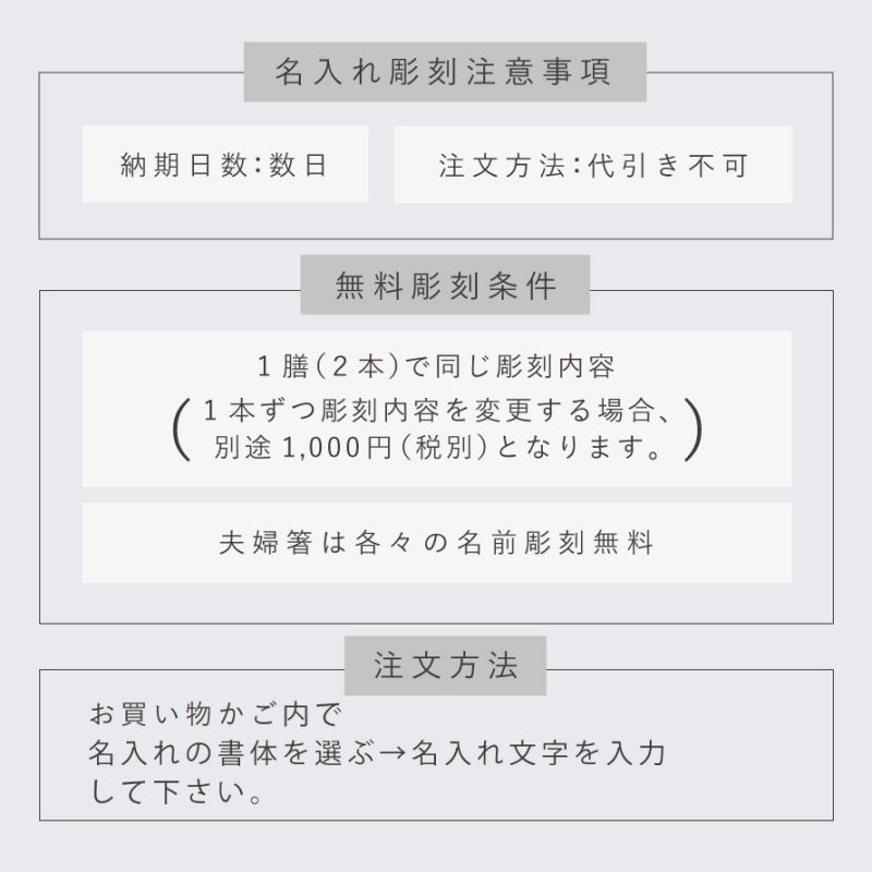 ■長さ:22.5cm■原産国:日本■材質:天然木■表面塗装:ウレタン(抗菌剤入)■備考:1本ずつ彫刻内容を変更する場合には、別途1000円(税別)必要になります。食洗機使用可能。