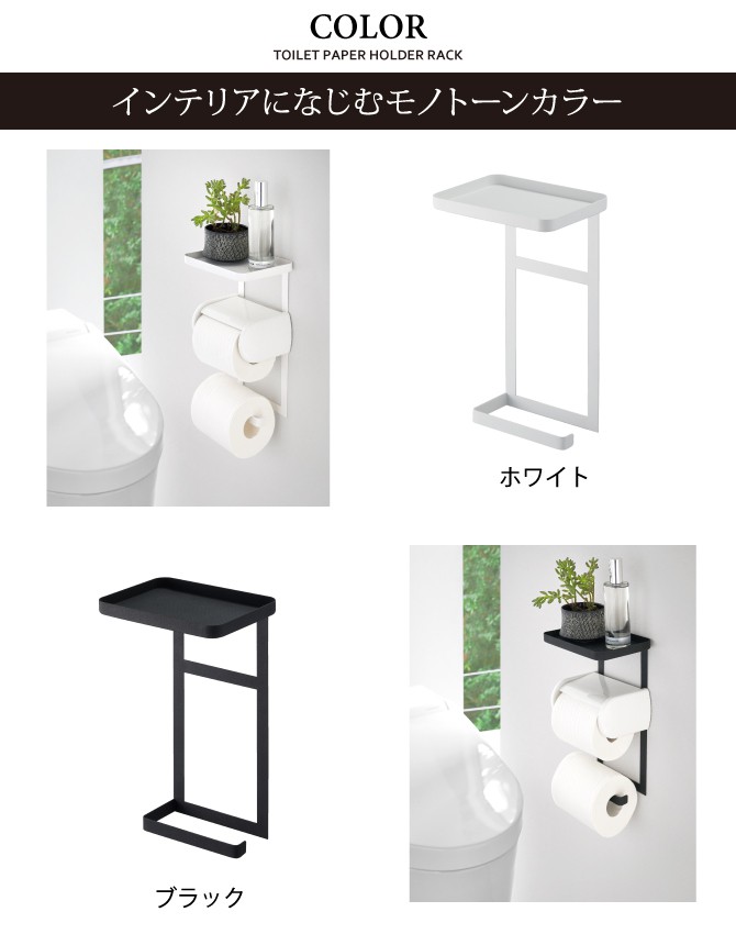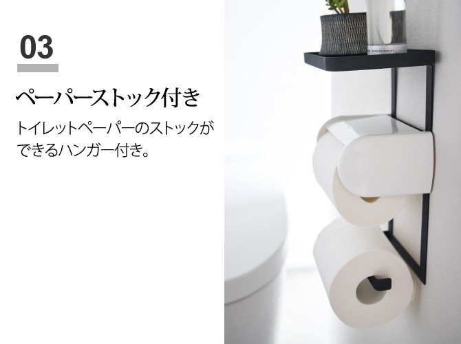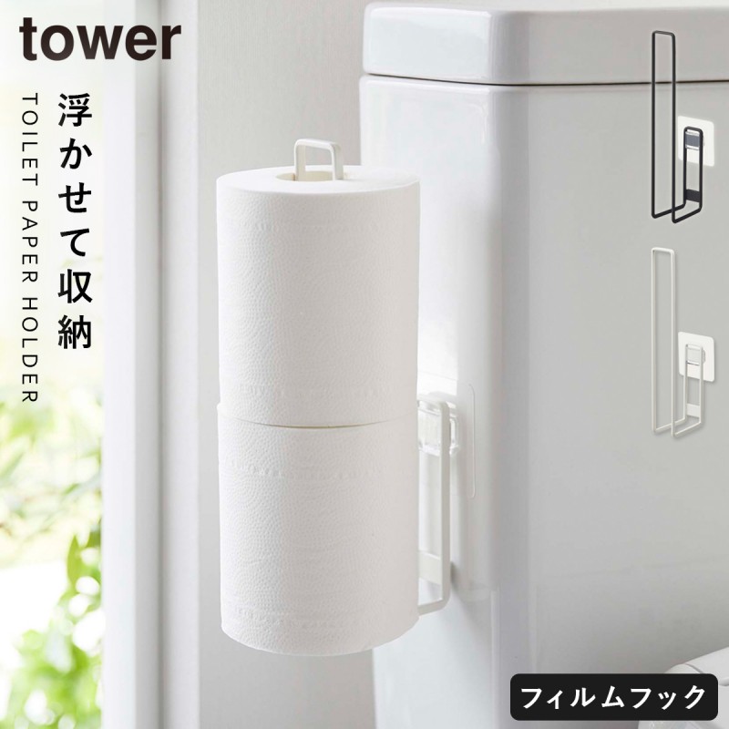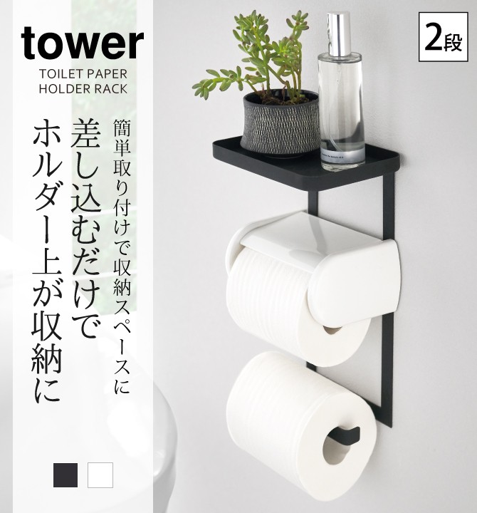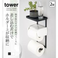 トイレットペーパーホルダー 収納 2段 ストッカー トイレ ラック トイレットペーパーホルダー上ラック 2段 タワー tower シンプル ホワイト ブラック 山崎実業