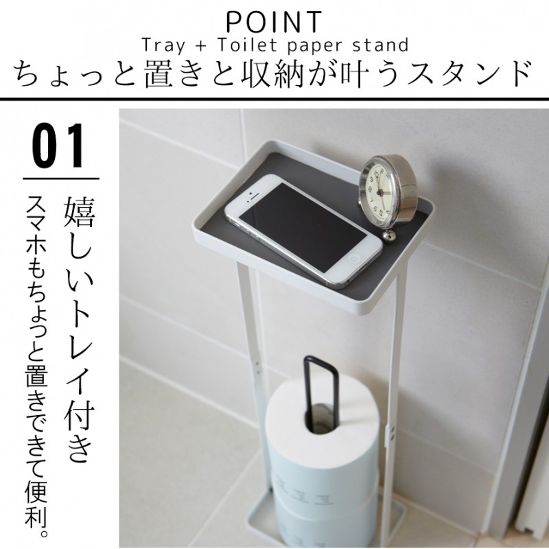 トイレットペーパー ストッカー スタンド コーナー トイレラック スリム スマホ置き 携帯 置ける トレイ付き トイレ 収納 トイレ収納 トイレタリー トイレグッ