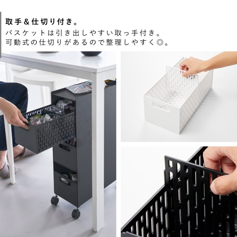 爆買 ■サイズ:本体/幅16.6×奥行43×高さ58cm、バスケット/幅15.3×奥行32.1×高さ12.2cm(1つあたり)■重量:7000g■内寸サイズ:バスケット1つあたり/幅14.5×奥行31.5×高さ11.5cm(仕切り板含まず)■材質:ワゴン/スチール(粉体塗装)、バスケット・仕切り板/ABS樹脂、キャスター/ナイロン、ストッパー/シリコーンゴム■耐荷重:天板/4kg、バスケット1つあたり/4kg、背面収納部1段あたり/1kg(静止荷重)■原産国:中国■付属品:スパナ