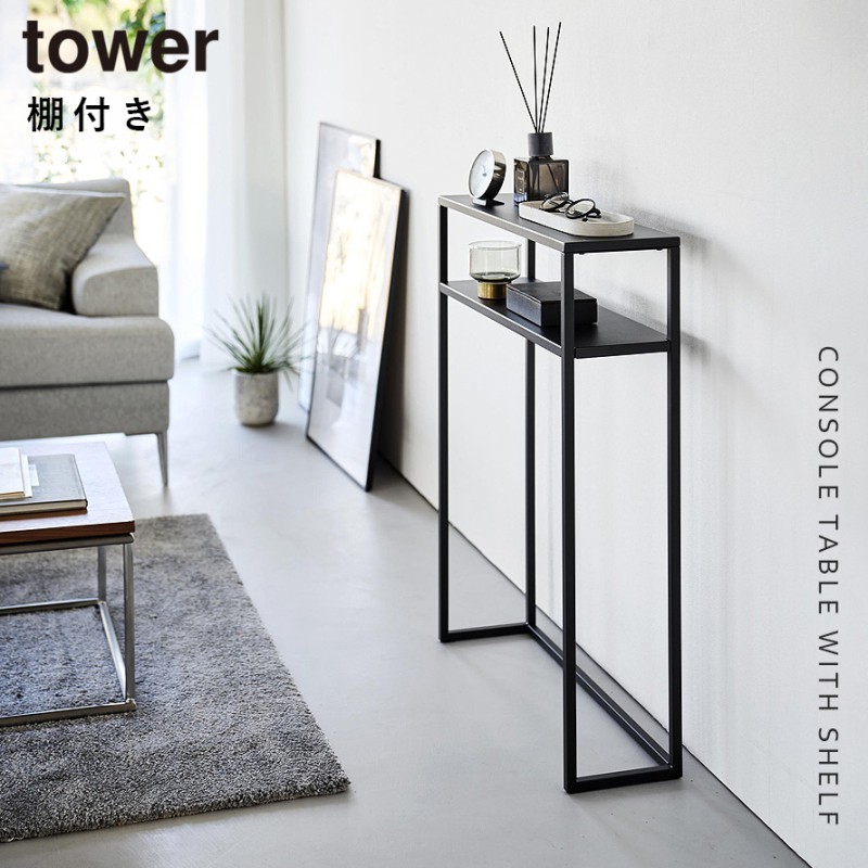 棚付きコンソールテーブル タワー 山崎実業 tower コンソールテーブル スリム 玄関 おしゃれ モノトーン ホワイト ブラック 10393 10394