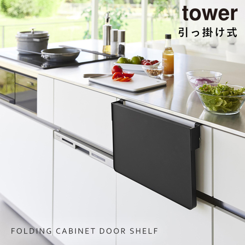シンク扉折り畳み棚 タワー 山崎実業 tower 拡張テーブル 補助テーブル 一時置き 省スペース シンク扉 キッチン 折りたたみ 作業スペース 作業台 簡単設置
