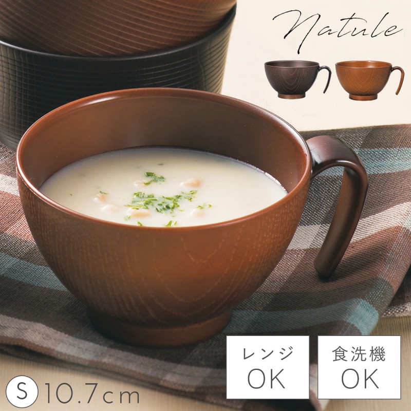 スープカップ 350ml 取っ手付き お椀 汁椀 和食器 おしゃれ 食器 食洗機対応 レンジ 割れない 軽い 木目 Natule レンジ手付木目椀 S ナチュール BPAフリー 割れ