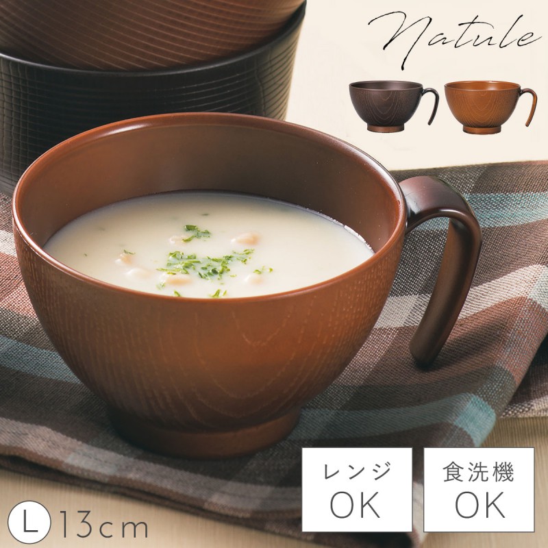 スープカップ 600ml 大きめ 取っ手付き お椀 汁椀 和食器 おしゃれ 食器 食洗機対応 レンジ 割れない 軽い 木目 Natule レンジ手付木目椀 L ナチュール BPAフリ
