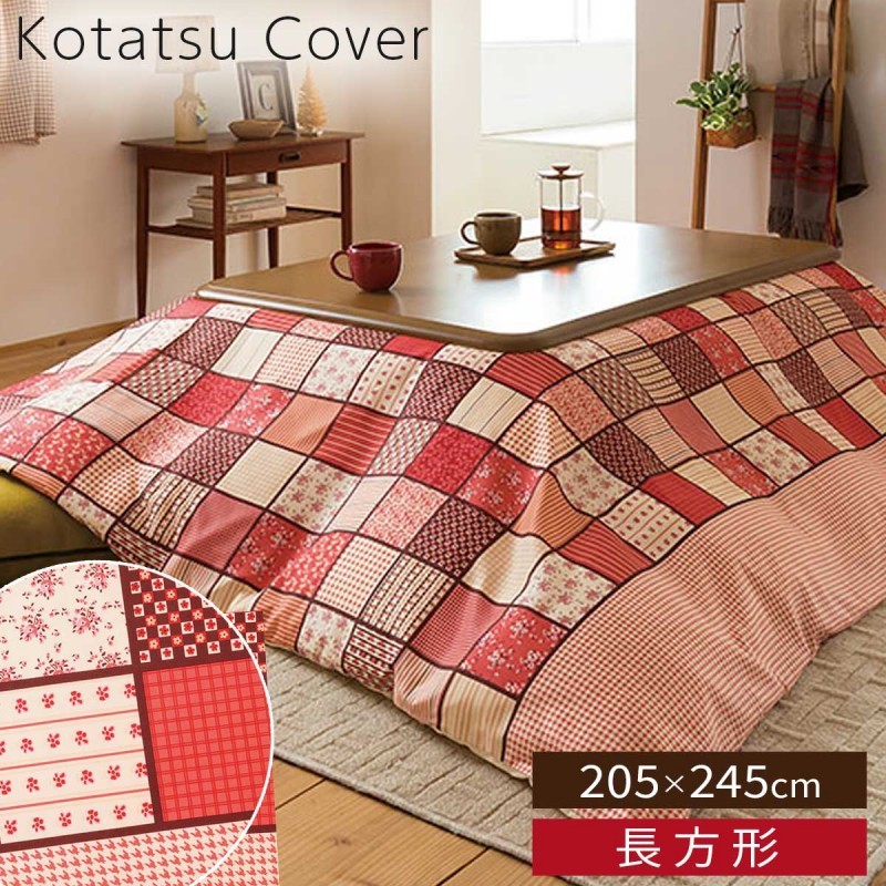 こたつカバー 長方形 200×240 こたつ布団 こたつ カバー パッチワーク 花柄 千鳥柄 おしゃれ かわいい 暖色 レッド ピンク こたつスッポリカバー フィオーレ