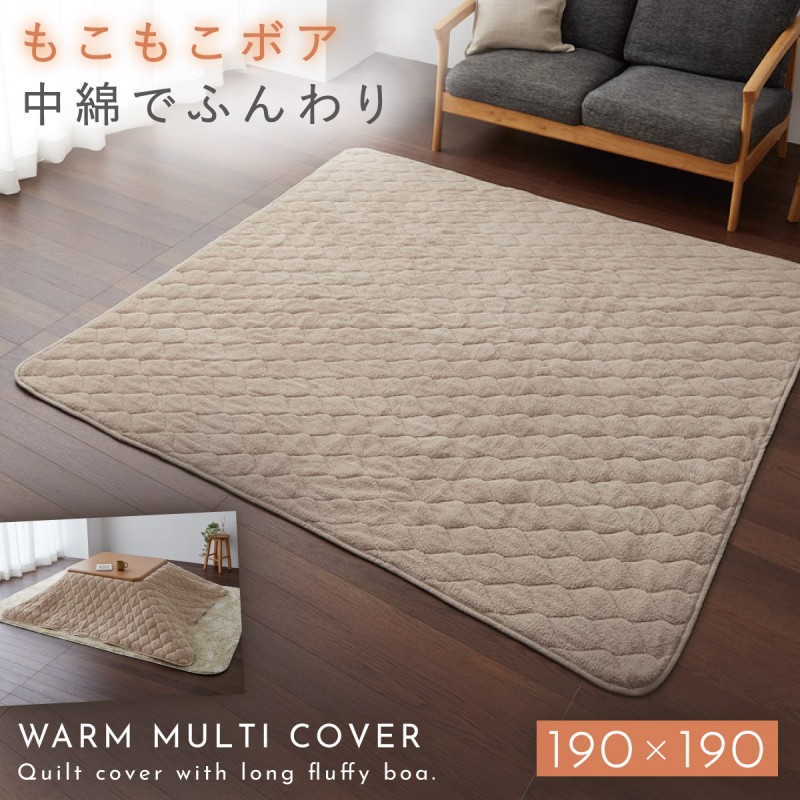 ■キーワード:マルチカバー キルト 正方形 190×190cm キルティング ソファー ベッド ホットカーペット こたつ カバー ファブリック ソファーカバー キルトカバー ベッドカバー ラグ クッション ズレ防止テープ ボア 中綿 あったか もこもこ ふんわり ふわふわ シンプル ベージュ おしゃれ お洒落 オシャレ かわいい 可愛い 洗える 洗濯可能 洗濯ok ウォッシャブル 暖かい 暖か あたたかい あったかグッズ 冷え対策 寒さ対策 冷え 秋冬 秋 冬