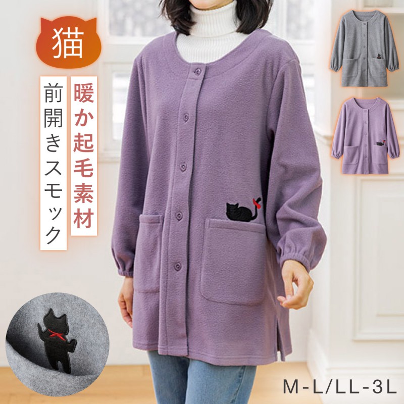 ■キーワード:フリース 割烹着 前開き フリース エプロン エプロン 暖かい フリース かっぽうぎ かっぽう着 割烹着 エプロン スモック 大きいサイズ 長袖 ロング丈 ポリエステル 軽い 軽量 猫 ねこ ネコ キャット 猫柄 アップリケ ブルー パープル 青 紫 ポケット付き ポケット 大きいサイズ ゆったり M L LL 3L シワになりにくい 乾きやすい 動きやすい 袖ゴム お尻が隠れる ロング 丈長 仕事用 家事 料理 キッチン 台所 雑貨 お洒落 オシャレ 可愛い カジュアル レディース 女性 大人 シニア 高齢者 お年寄り 主婦 婦人 ミセス 母 母親 60代 70代 80代 贈り物 誕生日 誕生日プレゼント 敬老の日 長寿祝い 母の日 プレゼント ギフト