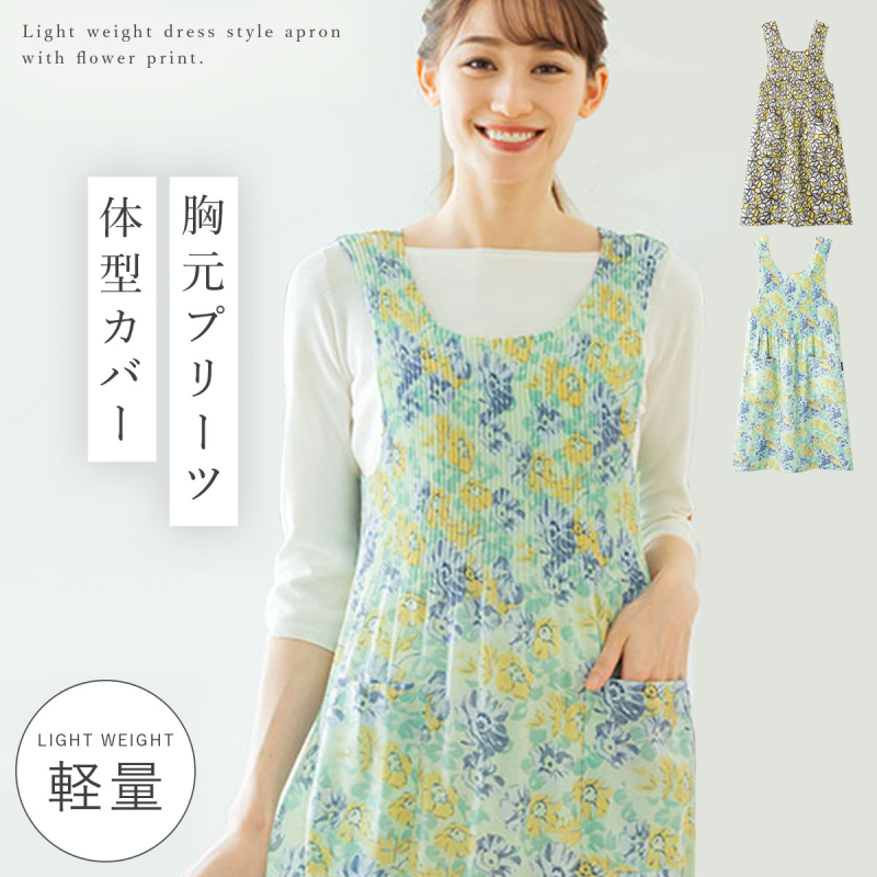 エプロン レディース チュニック ワンピース 軽い 軽量 かぶり かぶるだけ 薄手 シワにならない 花柄 ゆったり 大きいサイズ おしゃれ かわいい チュニックエプ