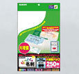 ●用紙:マルチプリント用紙 ●カラー:ホワイト ●用紙サイズ:W210×D297mm(A4サイズ) ●1面サイズ:91×55mm ●入数:25シート ●面付数:10面付 ●坪量:157g/m^2 ●紙厚:0.185mm