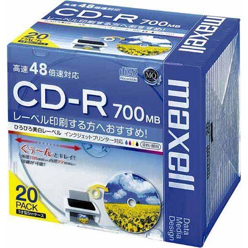maxell マクセル データ用CDR48倍700MB1枚ずつPケース入20枚パックプリンタブルレーベル CDR700S.WP.S1P20S(2139585)
