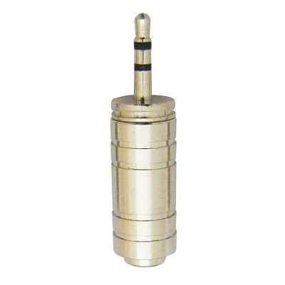 3.5φモノラルミニプラグを、6.3φステレオ標準プラグに変換します。