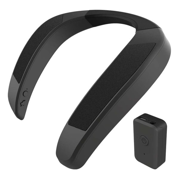●肩にかけるスピーカーが耳元をサウンドで包み込む