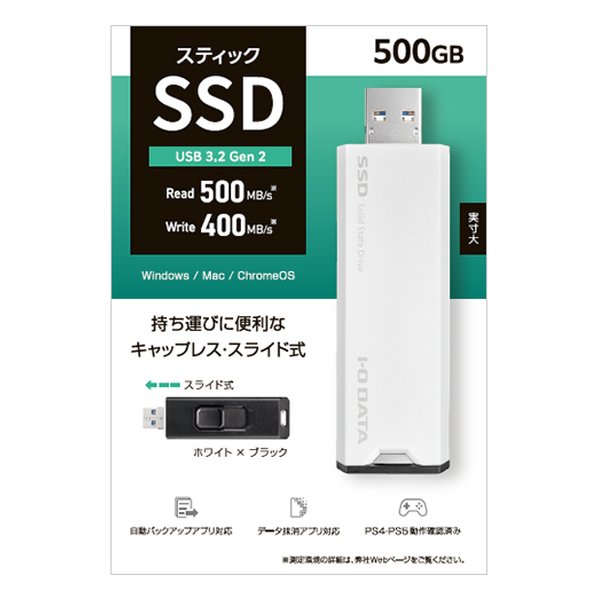 I・ODATA アイ・オー・データ機器 スティックSSD USB3.2Gen2 500GB ホワイト SSPS-US500W(2585741)