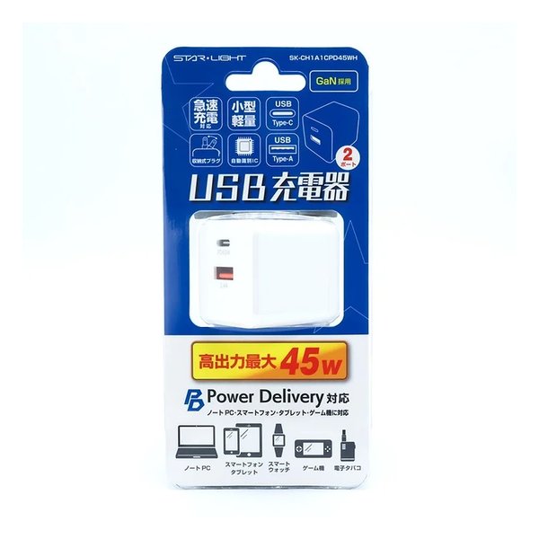 星光商事 セイコーショウジ USB充電器 窒化ガリウム GaN PPS対応 パワーデリバリー45W SK-CH1A1CPD45WH(2587440)