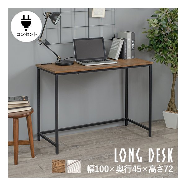 萩原 ハギハラ デスク 組立式 2口コンセント付 幅100×奥行45×高さ72cm ブラウン LT-4672-BR(2609244)