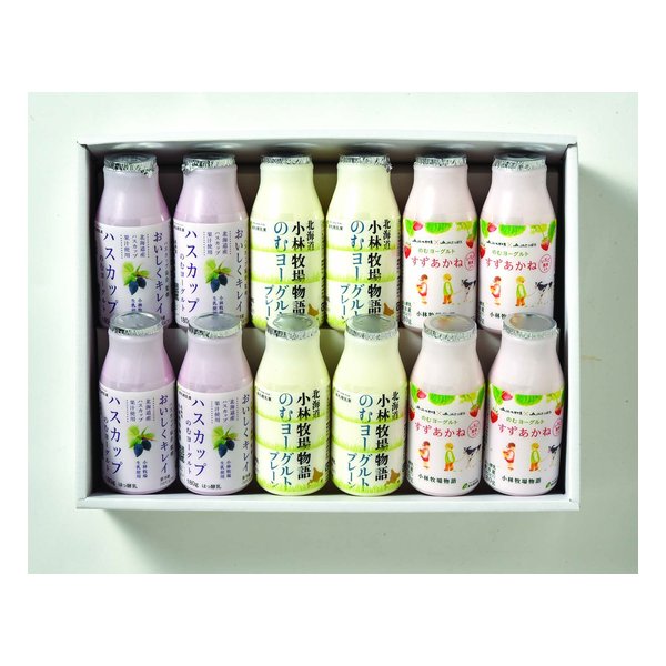 北海道小林牧場物語のむヨーグルト(プレーン・すずあかね・ハスカップ)/各180g×4