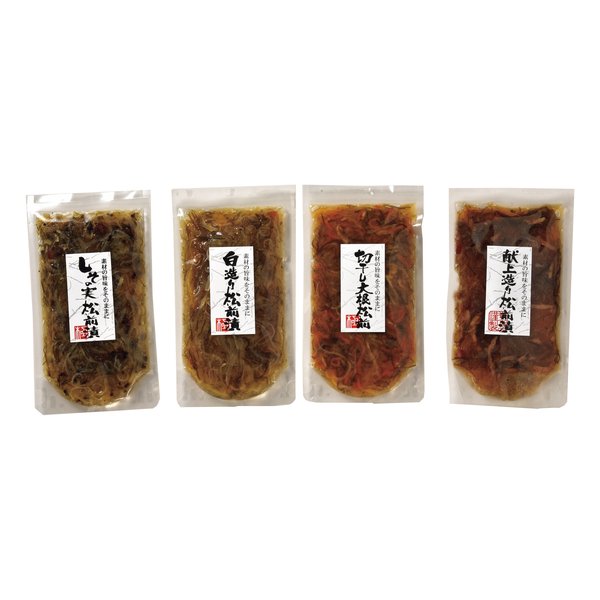 しその実松前漬・白造り松前漬・切干し大根松前漬・献上造り松前漬/各150g