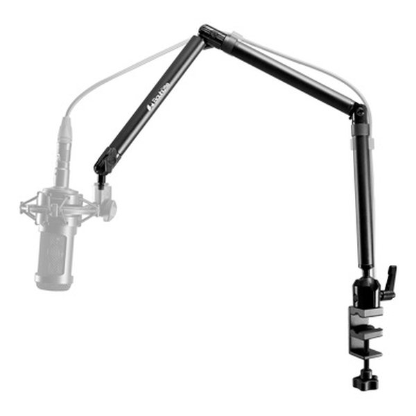 ポール取付け×ロングアーム デスクを広々つかえるマイクスタンド