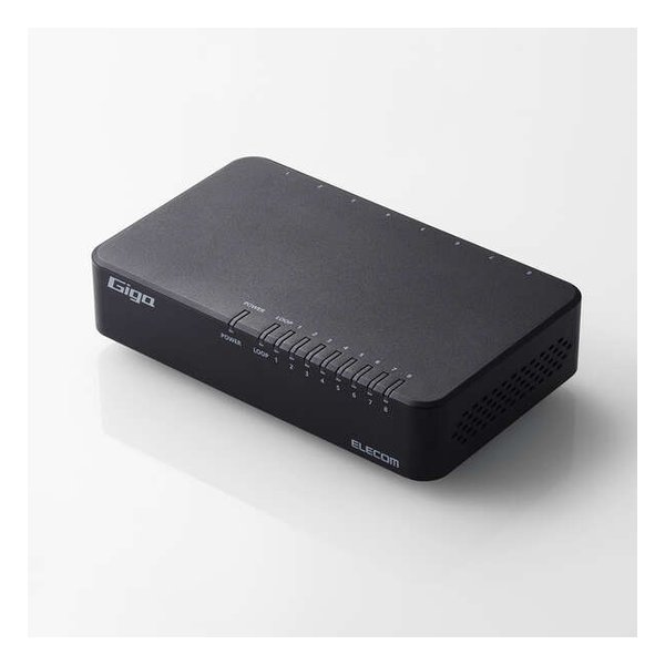 ●Giga(1000BASE-T)対応、ACアダプター電源のプラスチック筐体8ポートスイッチングハブです。