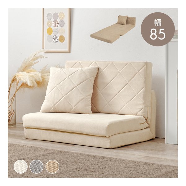 ●コンパクトサイズでワンルームにも置きやすく、背もたれのキルティングデザインが可愛いソファベッド