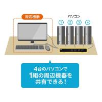 ●1組のUSBキーボード・USBマウス・ディスプレイで4台のパソコンを切り替えて使用できます。