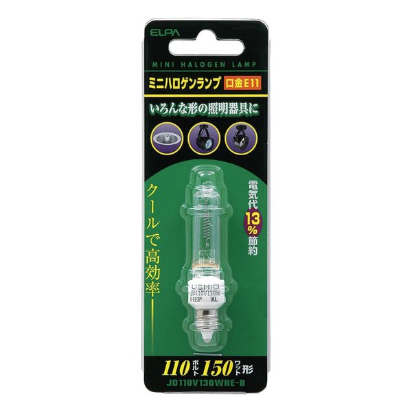 ELPA エルパ ミニハロゲンランプ 150W形/E11/クリア JD110V130WHE-B(2661836)