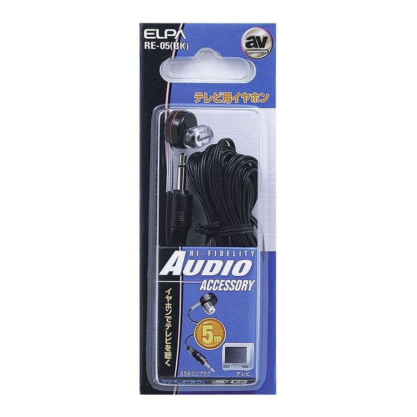 ELPA エルパ テレビ用イヤホン φ3.5ミニプラグ 5m ブラック RE-05 BK(2662000)
