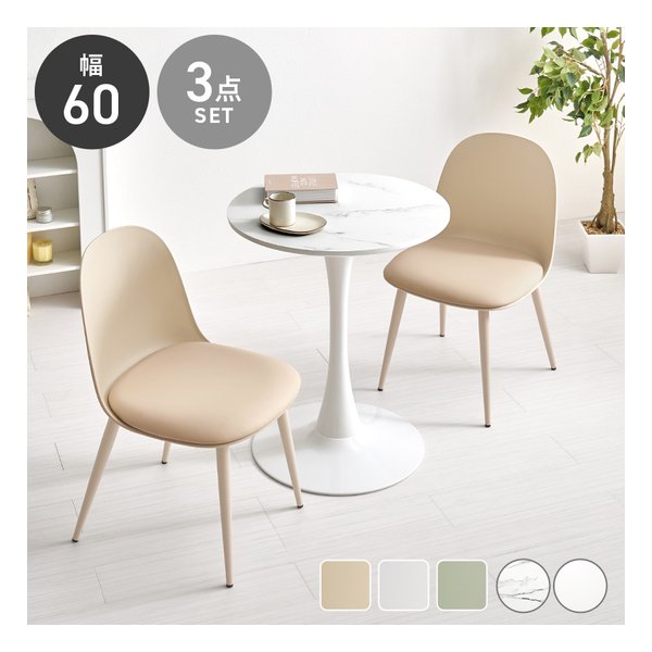 萩原 ハギハラ テーブル&チェア 3点セット テーブル直径60cm/マーブルホワイト/ベージュ BT-8657MWH-55LT-3S(2667893)