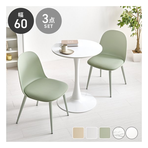 萩原 ハギハラ テーブル&チェア 3点セット テーブル直径60cm/ホワイト/グリーン BT-8657WH-55GR-3S(2667895)