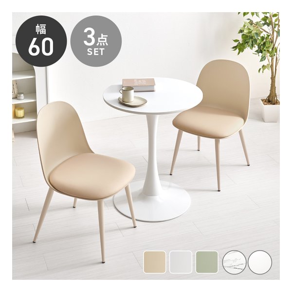 萩原 ハギハラ テーブル&チェア 3点セット テーブル直径60cm/ホワイト/ベージュ BT-8657WH-55LT-3S(2667896)