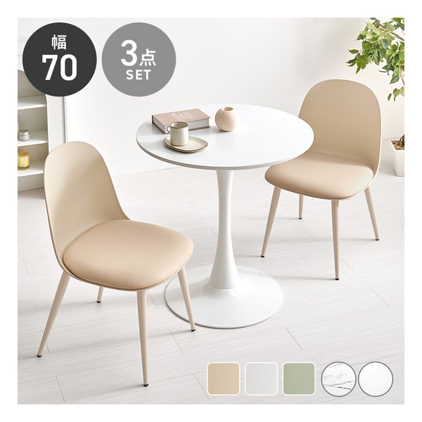 萩原 ハギハラ テーブル&チェア 3点セット テーブル直径70cm/ホワイト/ベージュ BT-8658WH-55LT-3S(2667902)