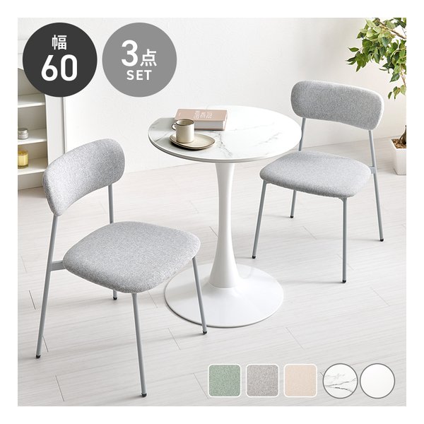 萩原 ハギハラ テーブル&チェア 3点セット テーブル直径60cm/マーブルホワイト/グレー BT-8657MWH-56GY-3S(2667912)