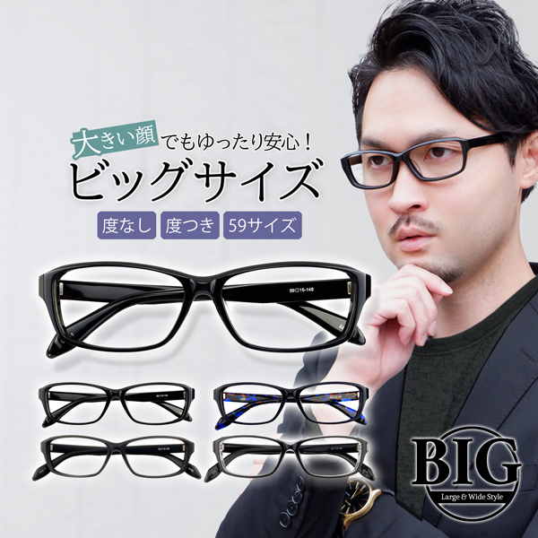 メガネ 眼鏡 めがね 大きい 顔 頭 ビッグサイズ メンズ 度付き ダテ おしゃれ ウェリントン 黒縁 ブルーライトカット PC 男性 ブラック ぽっちゃり