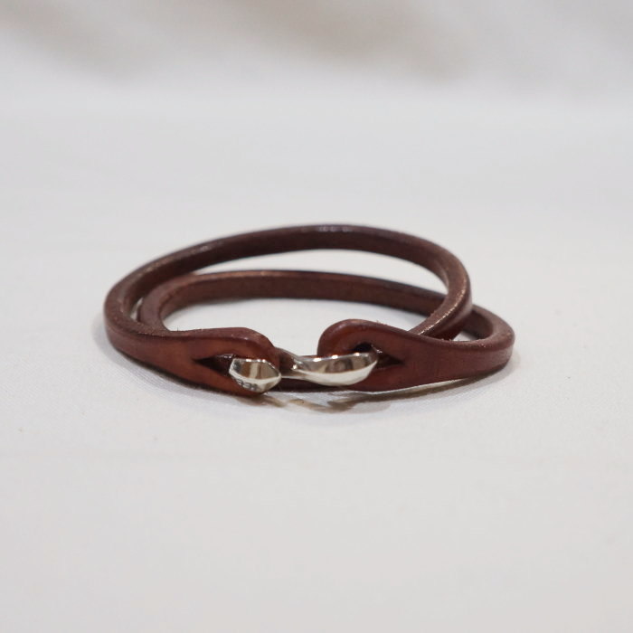 いくつか色を揃えていろいろなコーディネートを楽しみたいフラットヘッドレザーブレスです。