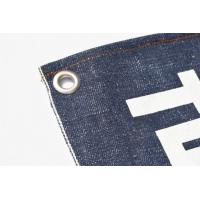 藍+のデニムによるバナーです。プリントは藍+モデルのデザインになっており、生地はジーンズに使われる18oz藍+セルビッチデニムを使っています。横はセルビッチデニムの幅を生かし約82cm程、縦は33cm前後と短めになりますので使いやすい形状となっています。