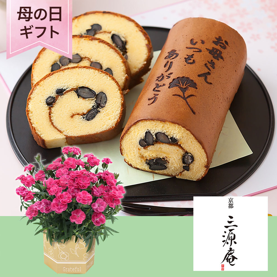 母の日 鉢植えセット「京・伏見 三源庵 丹波黒豆ロールカステラ」 2025 花 宅配 プレゼント ギフト 母 50代 60代 70代 花とスイーツ お菓子 食べ物