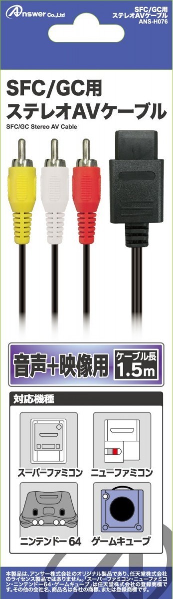 スーパーファミコン/ゲームキューブ SFC/GC用 ステレオAVケーブル JAN4573201412218