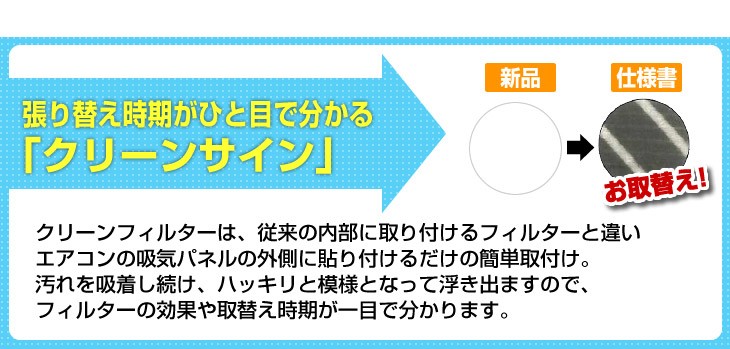 シールで簡単取り付け、取替えサイン付きで管理も安心。