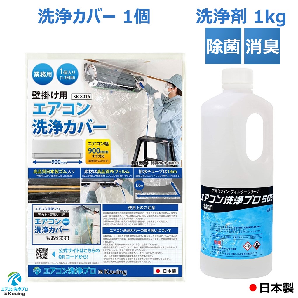 2点セット 壁掛用 エアコン 掃除 洗浄 カバー & エアコン 洗浄剤 1kg エアコン洗浄プロ505 業務用 プロ仕様 日本製