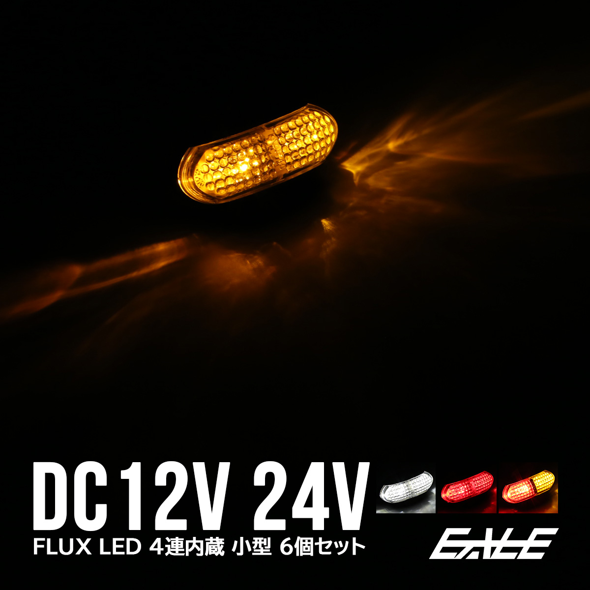 【送料無料】 6個セット 12V 24V FLUX LED 4連 内蔵 マーカーランプ サイドマーカー 小型 汎用 防水 F-123-126-6SET